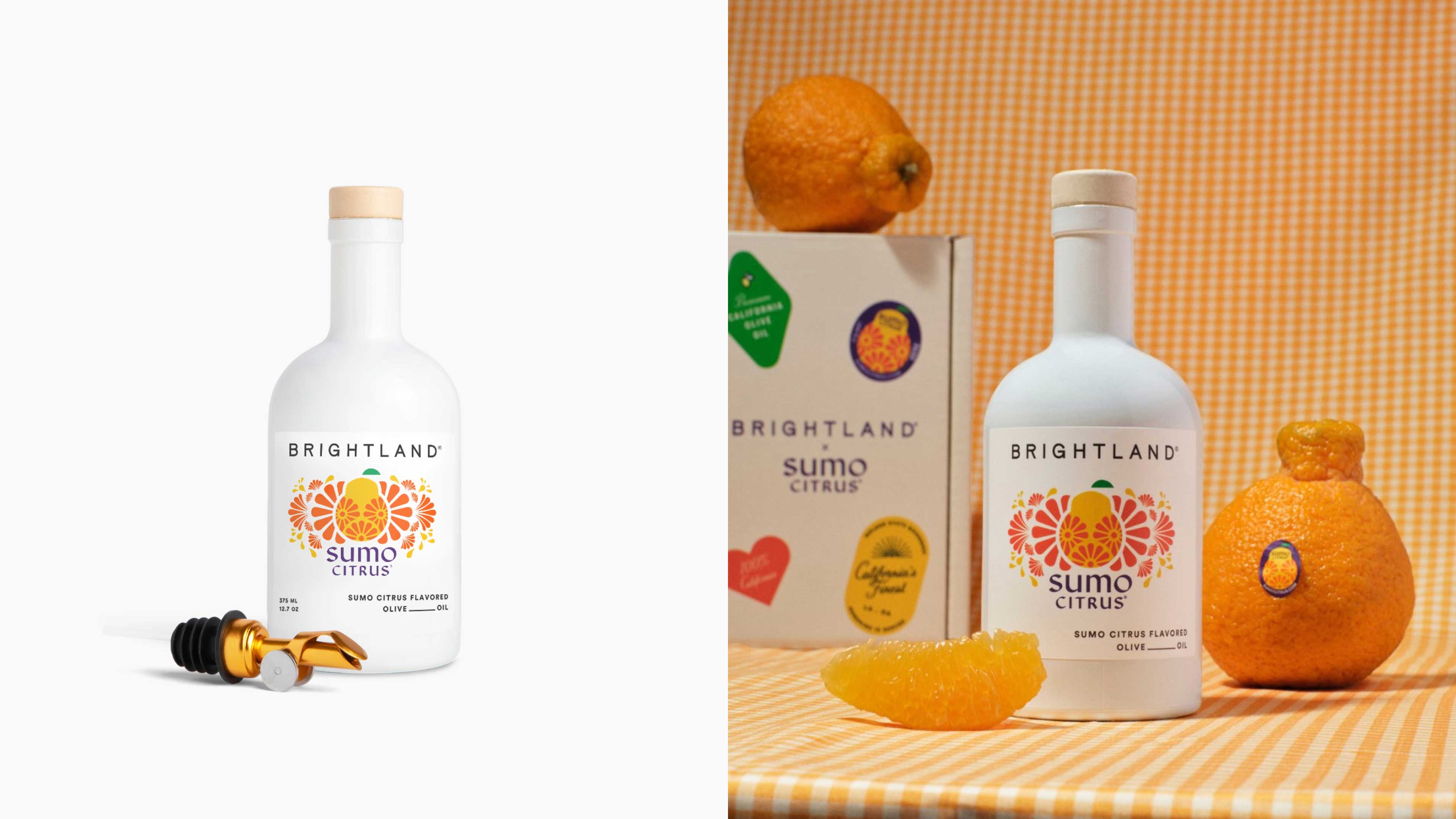Created for Brightland and Sumo Citrus, this limited-edition product launch translated the vibrant flavor profile of Sumo Citrus into a premium packaging experience. The final design celebrated California-grown ingredients through bold color, thoughtful material choices, and a gifting experience designed to feel both seasonal and luxurious.